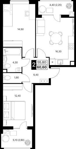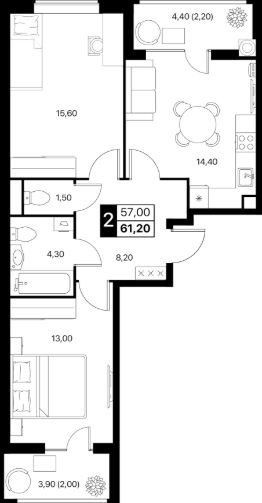 2-к квартира Показать на карте