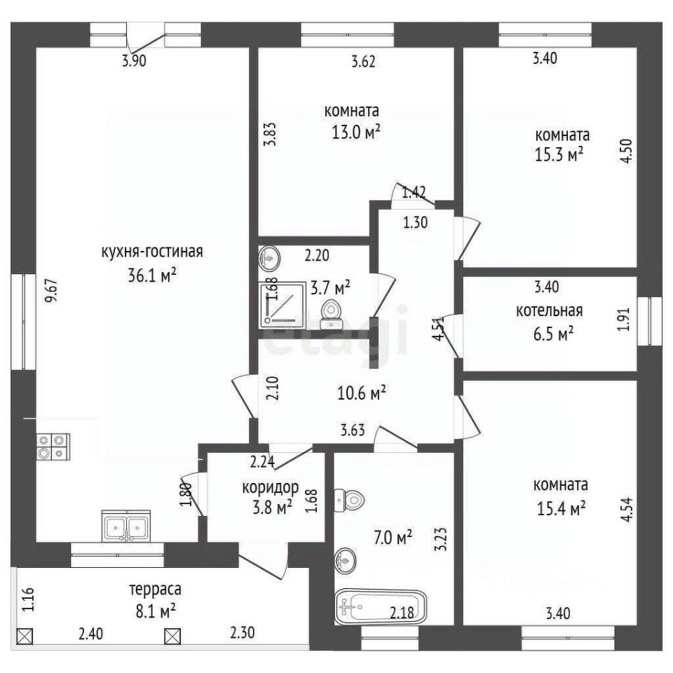 Дом 100 м² · 3 сотки · 1 этаж