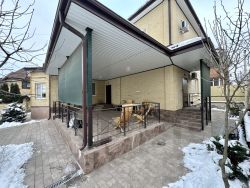Первомайский район, кирпичный дом 350/115/37 кв.м., 3 уровня (подвальный этаж, 1-й этаж и 2-й этаж), 6 жилых комнат( две на 1 этаже, четыре на 2 этаже), 3 санузла ( раздельный в подвальном этаже, совмещенные на 1 этаже и 2 этаже). Планировка 1 этажа: холл 26,6 кв.м., кухня-столовая 37,1 кв.м. с выходом на террасу, зал 27 кв.м., кабинет 13,5 кв.м., коридор 1,5 кв.м., совмещенный санузел 6,4 кв.м., гардеробная 5,6 кв.м. Планировка 2 этажа: четыре жилых комнаты 26,6 кв.м., 17,4 кв.м., 16,6 кв.м., 13,8 кв.м., коридор 22,5 кв.м., гардеробная 5,8 кв.м., совмещенный санузел 10,9 кв.м., два балкона 3,5 кв.м. с выходом из коридора и 5,6 кв.м. с выходом из двух спален. Планировка подвального этажа: спортзал 24,2 кв.м., котельная 8,6 кв.м., два коридора 9,7 кв.м. и 12,6 кв.м., кладовая 8,9 кв.м., комната отдыха 12,5 кв.м., душевая 2,8 кв.м., туалет 2,2 кв.м. и еще три подсобных помещения 17,4 кв.м., 12,8 кв.м. и 5,5 кв.м. Внешние стены дома кирпичные, толщиной 51 см+утепление пеноплексом(эструдированным пенополистиролом)+декоративная штукатурка, сборные железобетонные перекрытия, лестницы из монолитного железобетона, мет.-пласт. окна, полы отделаны керамогранитом, плиткой с системой подогрева (водяные теплые полы), стены внутренние стены отделаны декоративной штукатуркой, плиткой, обоями ( в одной спальне на 2 этаже), в двух спальнях на 2 этаже стены подготовлены под чистовую отделку. Все удобства, газовый котел Baxi, центральное городское водоснабжение, кроме того есть своя индивидуальная скважина. Участок 7,5 соток, дорожки и площадка между забором и фасадом дома вымощена тротуарной плиткой, земля в собственности. Живописные места, рядом расположены рощи, удобные асфальтированные подъездные пути, район элитной застройки.