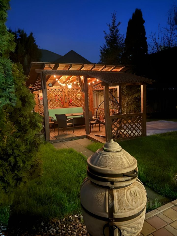 К продаже предлагается кирпичный двухэтажный дом, расположенный на участке площадью 616 м2. Общая площадь домовладения составляет 194 м2. Планировка первого уровня включает техническое помещение, санузел с душевой, спальню и большую зону кухни-гостиной с выходом на летнюю террасу с мангальной зоной. Второй этаж занимают мастер-спальня с гардеробной и постирочной, кабинет, две детские комнаты и ванная комната, а также есть небольшое чердачное помещение. В доме выполнен современный качественный ремонт, установлена вся необходимая мебель и бытовая техника. Напольные покрытия — плитка и ламинат, стены оклеены обоями. На первом этаже и в санузлах проложена система тёплого пола. Кухонный гарнитур с большой рабочей зоной выполнен на заказ и оснащён встроенной техникой. В комнатах установлены сплит-системы. Участок благоустроен: есть место для бассейна, высажены плодовые и декоративные деревья и цветы. Также имеется въезд на 6 автомобилей. За домом расположена дренажная система. Есть возможность расширения участка. Асфальтированная улица. Развитая инфраструктура.