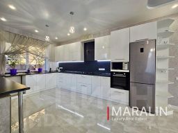 К продаже предлагается кирпичный двухэтажный дом, расположенный на участке площадью 616 м2. Общая площадь домовладения составляет 194 м2. Планировка первого уровня включает техническое помещение, санузел с душевой, спальню и большую зону кухни-гостиной с выходом на летнюю террасу с мангальной зоной. Второй этаж занимают мастер-спальня с гардеробной и постирочной, кабинет, две детские комнаты и ванная комната, а также есть небольшое чердачное помещение. В доме выполнен современный качественный ремонт, установлена вся необходимая мебель и бытовая техника. Напольные покрытия — плитка и ламинат, стены оклеены обоями. На первом этаже и в санузлах проложена система тёплого пола. Кухонный гарнитур с большой рабочей зоной выполнен на заказ и оснащён встроенной техникой. В комнатах установлены сплит-системы. Участок благоустроен: есть место для бассейна, высажены плодовые и декоративные деревья и цветы. Также имеется въезд на 6 автомобилей. За домом расположена дренажная система. Есть возможность расширения участка. Асфальтированная улица. Развитая инфраструктура.