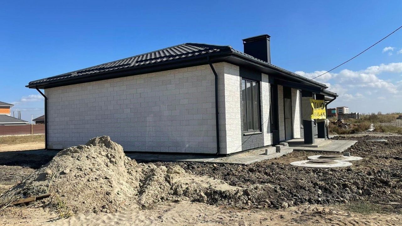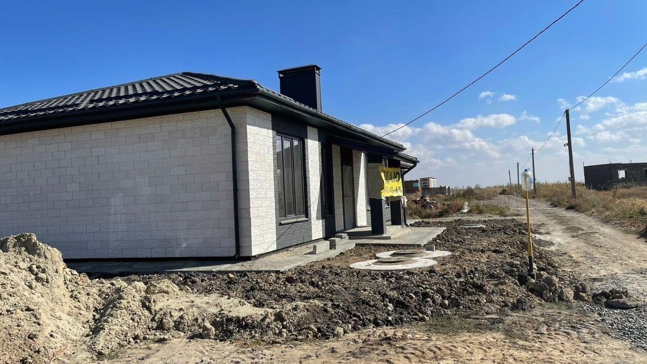 Новый дом от собственника,стройвариант(под чистовую отделку), в экологически чистом месте - ДНП ''Озерный''. Адрес:Мясниковский район, ДНП ''Озерный'' ул.Грушевая 2, Такой участок в поселке один! Один из лучших и больших участков в ДНП , От озера 200м. Я собственник. Круглосуточная охрана. Периметр закрыт. Асфальт до въезда в ДНП. Внутри КП ровная щебеночная дорога. Год постройки 2015. Гостиная -37 м2, кухня-21 м2, три спальни-18,15,12 м2 ,гардеробная-8м2, котельная, два санузла-9м2 и 5 м2, веранда. Монолитный армированный сейсмопояс. Внутри выполнены все перегородки и проведены все коммуникации, кроме электрики.Стены выполнены из ячеистого автоклавного бетона заводского изготовления (экологически чистый сертифицированный материал). Наружные стены утеплены пеноплексом 50мм, с отделкой штукатурной смесью(короед) и краской CAPAROL(Франция).Теплые полы в санузлах,прихожей и кухне. Пол утеплен пеноплексом 50мм по всей площади. Высота потолков- 3 м. Электроснабжение 3-фазы.Газ есть. Проект газоснабжения на руках. Окна и подоконники из натурального дуба. Имеется искусственный камень для отделки цоколя-60 м2. Территория участка ограждена. Круглосуточная охрана, шлагбаум, пульт. Удобный подъезд . Гараж 7х4 с подвалом. Документы готовы. Помогу довести дом до полной готовности по Вашим пожеланиям и в срок- от 2 до 3 месяцев . Все возможные формы оплаты, включая ипотеку.