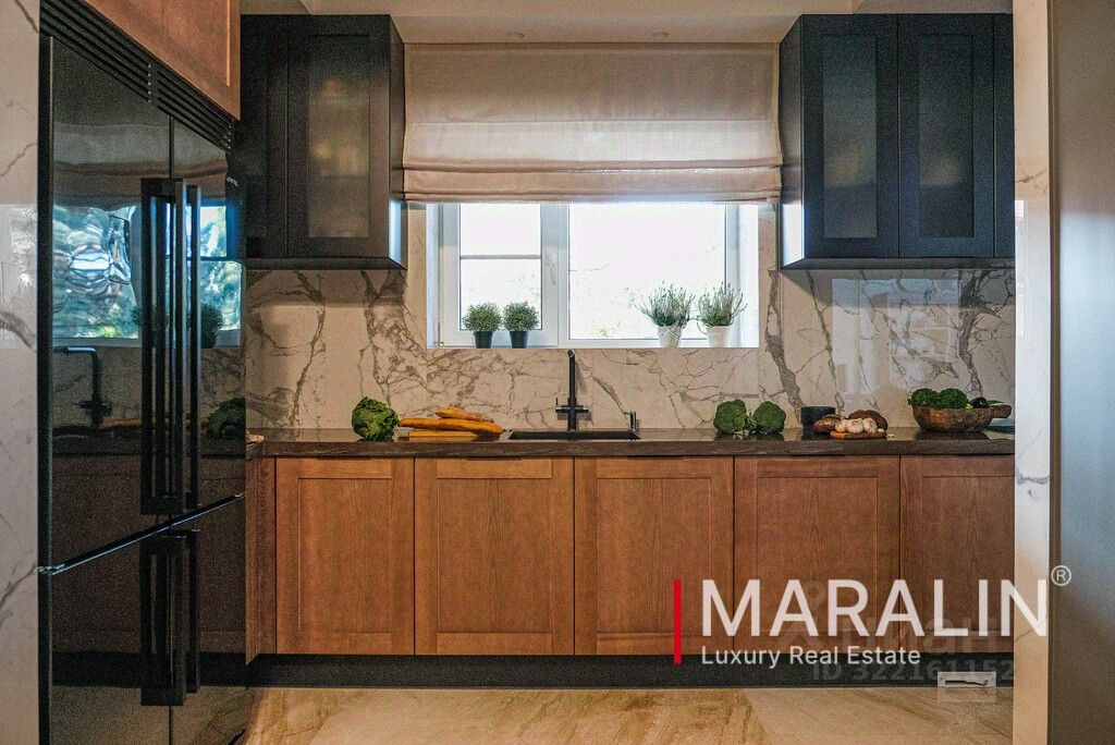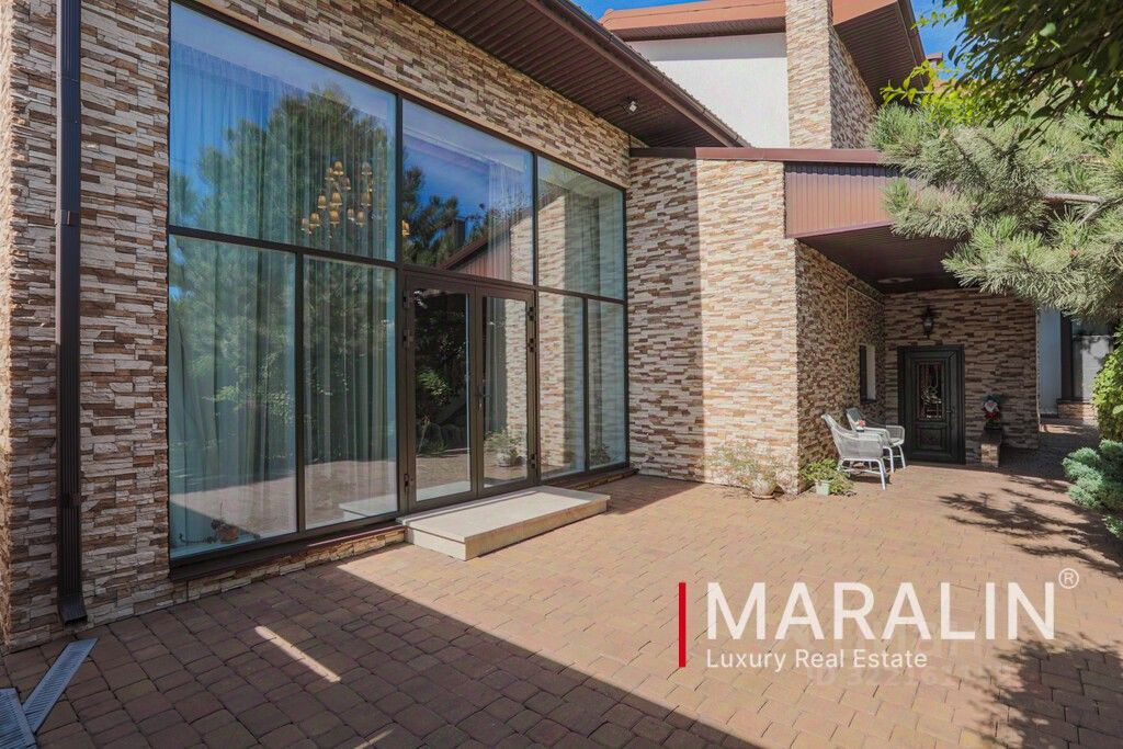 Общая площадь строения 226 м2, решено в два этажа со вторым светом. Первый этаж: холл, гостиная с выходом во двор, кухня, санузел, спальня с гардеробной и ванной. Второй этаж: кабинет, две спальные комнаты, каждая решена с гардеробной и ванной. Интерьер создан известным дизайнером. Во дворе расположен бассейн 4 на 8 метров, уютная беседка, барбекю. Отдельный гостевой дом 80 м2- сауна, гостиная с кухней, санузел. Взрослый ландшафт регулярно поддерживается садовником.