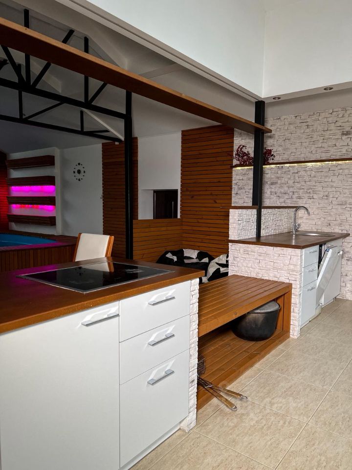 Предлагаем к покупке красивое домовладение, которое обеспечит комфортную жизнь большой семьи.Его площадь и планировка всех зон, будь отдельно стоящий гараж на три машины с гостевой мансардой, большая грамотно зонированная придомовая территория, собственно и сам дом с встроенным бассейном с распашными витражами и выходом на просторную террасу, позволит найти место для времяпрепровождения каждого из своих хозяев.Планировка дома примечательна ещё тем, что в нём предусмотрено обособленное жилое крыло, которое позволит обеспечить приватность жизни близких при совместном проживании под одной крышей. Это очень удобно!Дорогостоящая единая система кондиционирования, установленная во всех помещениях дома, позволит всегда дышать свежим оптимальной температуры и влажности воздухом. Воздух дома - это неоценимый фактор не только комфорта, но главное для здоровья и долголетия!Дом с бассейном и выделеннымжилымкрыломОбщие характеристики:Площадь земельного участка - 12 сотокПлощадь дома - 378 м2Количество спален - 5Кухня гостиная - 75 м2Терраса - 80 м2Гостевая мансарда - 80 м2Гараж - 3 автоОбособленное жилое крыло - 76,5 м2Бассейн - вместимостью 51 м3 и площадью зеркала воды 32 м2
