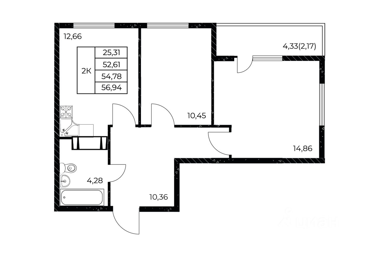 56 м² · Этаж 2 из 24