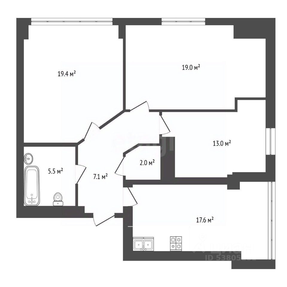 55 м² · Этаж 9 из 12