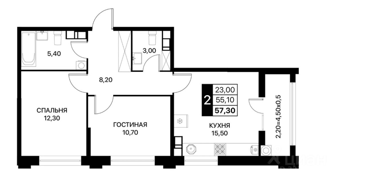 57 м² · Этаж 11 из 12