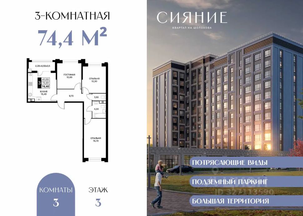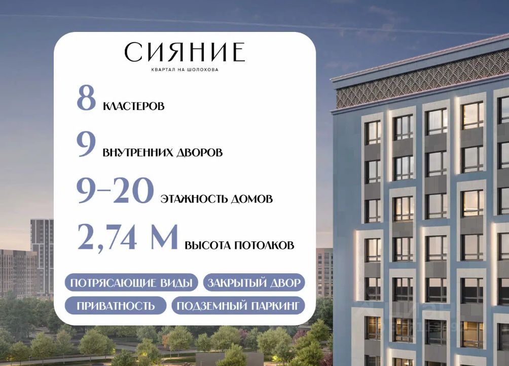 Продается квартира в ЖК Сияние •Оптимальный формат планировок для комфортной жизни: отдельная спальня, просторная кухня-гостиная, ниша под гардеробную или кладовую, большие окна, много света, современные планировочные решения •Современная архитектура и качественные материалы •Закрытая территория, безопасность, двор без машин •Детские и спортивные площадки, прогулочные зоны •Парковочные решения: гостевой, наземный, многоуровневый паркинг •Развитая инфраструктура: рекреационные зоны, магазины, транспорт Полное юридическое сопровождение Комфортные условия ипотеки, рассрочка Звоните!