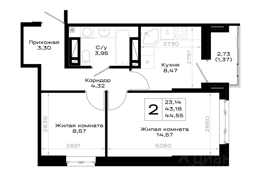 44 м² · Этаж 3 из 20