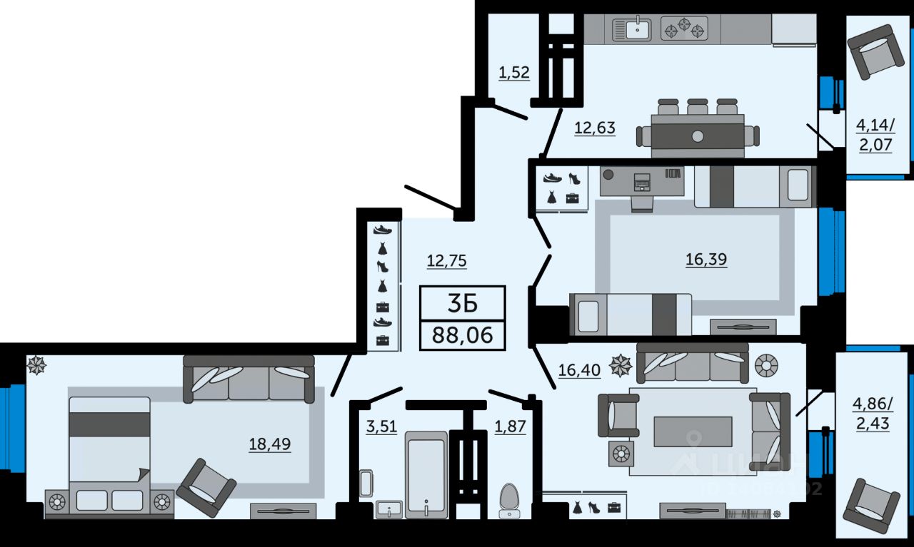 43 м² · Этаж 14 из 22