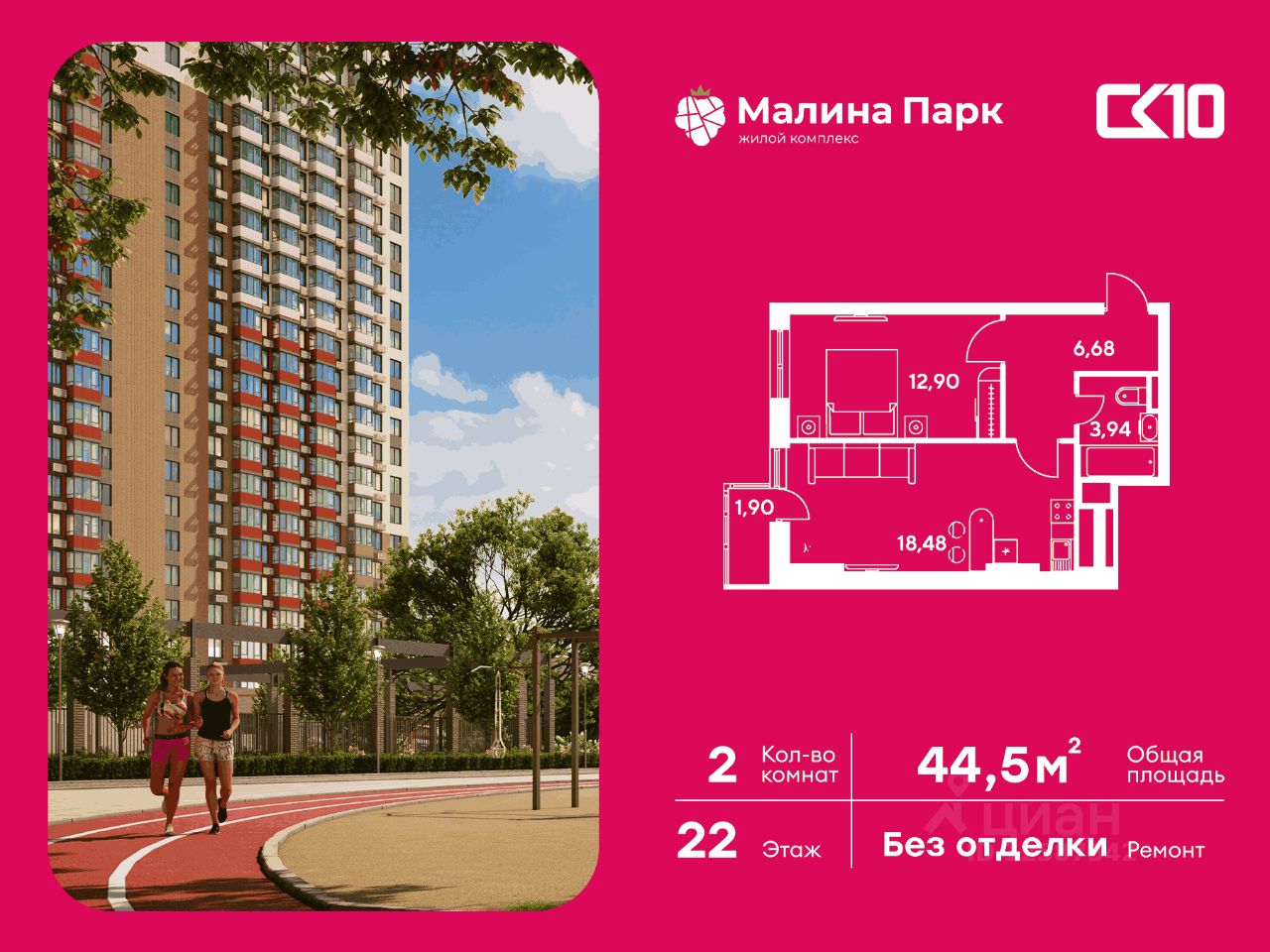 44 м² · Этаж 6 из 12