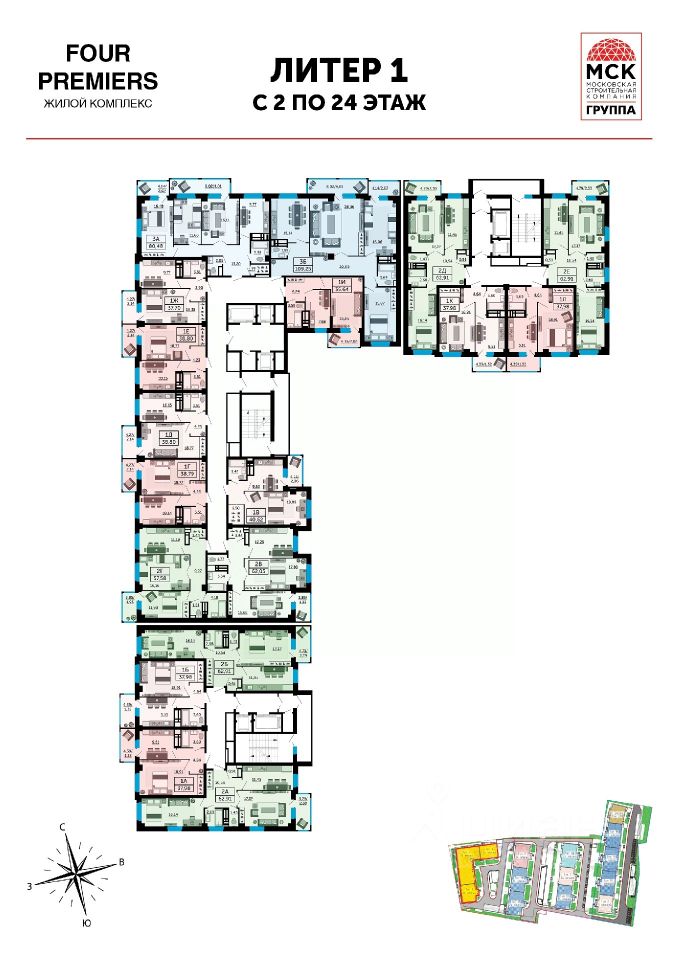 68 м² · Этаж 17 из 24