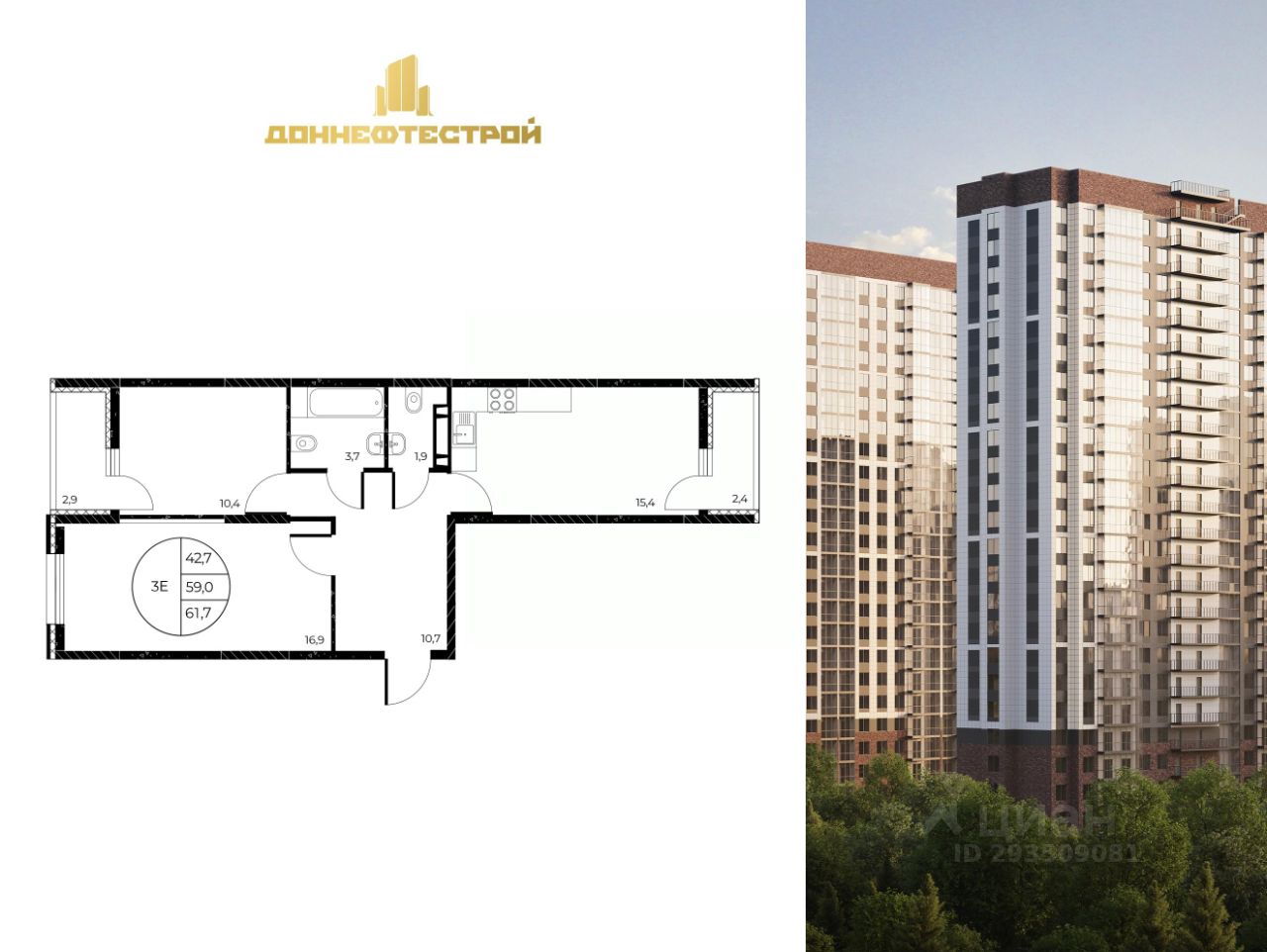 61 м² · Этаж 13 из 25