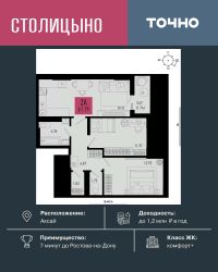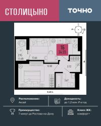 ЖК ''Столицыно'' — это самый масштабный проект ГК ТОЧНО в Ростовской области. На территории 42 га возводятся 18 домов переменной этажности, школа на 1300 мест, два детских сада на 600 мест, медицинский центр, парк 8,4 га и фитнес-центр с бассейном. Проект возводится по концепции ''город в городе'', где все необходимое для комфортной жизни будет в шаговой доступности.