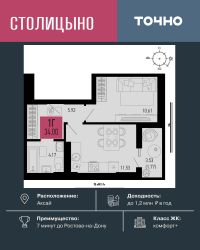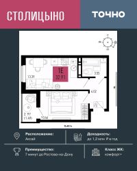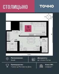 ЖК ''Столицыно'' — это самый масштабный проект ГК ТОЧНО в Ростовской области. На территории 42 га возводятся 18 домов переменной этажности, школа на 1300 мест, два детских сада на 600 мест, медицинский центр, парк 8,4 га и фитнес-центр с бассейном. Проект возводится по концепции ''город в городе'', где все необходимое для комфортной жизни будет в шаговой доступности.