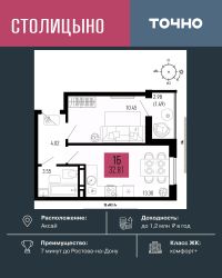 Литер 3.2, 15 этаж, 109. Микрорайон ''Придонье'' - прекрасная возможность жить в спокойном, зеленом и комфортном месте, всего в 7 минутах езды от Ростова-на-Дону. Небольшой и уютный Аксай создан именно для того, чтобы остановиться, провести время с семьей и отдохнуть от столичного ритма, при этом все возможности мегаполиса остаются под рукой. Квартира находится в современном микрорайоне с развитой инфраструктурой. Идеальный вариант для тех, кто ищет гармонию между тишиной, пространством для жизни и близостью к большому городу. Звоните для всех деталей и просмотра.Вся необходимая инфраструктура в пешей доступностиПродуманное содержаниеПросторные дворыБезбарьерная средаВсе для детей всех возрастовШкола на 1 810 местДва детских сада, общая вместимость 770 местДве ПоликлиникиПожарное депо на 6 машинОпорный пункт полицииСтанция скорой помощи на 2 бригадыБульварЛетний кинотеатрЗона для настольных игрТропа здоровьяВело-беговая дорожкаВоркаут зоны для взрослых и детейЗоны отдыха и релаксаТихие зоны с качелями и навесамиПлощадки для выгула собак + лапомойкиПодземный и наземный паркингЗарядные станции для электромобилейВидеонаблюдениеУмная система контроля посетителейСовременные умные домофоныПриобрести квартиру можно одним из способов:-субсидированная семейная ипотека от 3,5 % на весьсрок-рассрочка-оплата наличными-дистанционная покупкаПозвоните сейчас и забронируйте квартиру соскидкой!