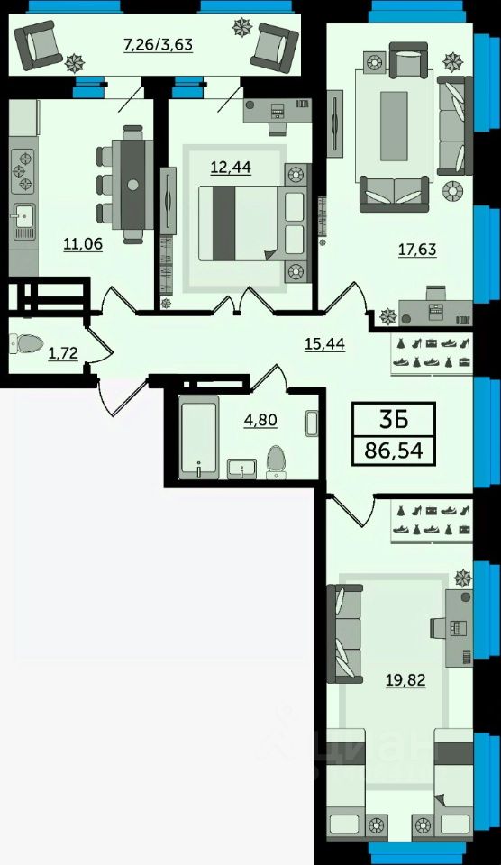 В продаже трехкомнатная квартира в новостройке. Лучшее решение для жизни, под сдачу или для инвестиций. Просторная трёхкомнатная квартира евроформата с видом на реку это решение для большой современной семьи. Большие и светлые комнаты идеальны для оформления на самый взыскательный вкус для всей семьи. Успейте забронировать идеальное место для жизни напрямую от застройщика. В сотрудничестве с ведущими банками России предлагаем вам выгодные условия при приобретении квартиры в ипотеку в жилом комплексе: Первоначальный взнос: от 20% (обязательно). Процентные ставки: от 6% годовых (условия действуют по программе ''Семейная ипотека''). Дом сдан СУПЕР ПРЕДЛОЖЕНИЕ на сданные дома: без платежа до 20.12.2026 г., первоначальный взнос составляет всего 25%, остаток суммы необходимо внести в течение месяца после окончания льготного периода. Только сейчас, при покупке квартиры ставка 0,11% на первые 12 месяцев! Успейте приобрести трехкомнатную квартиру со скидкой до 50% на зависимый паркинг. ЖК ''Акватория'' - жилой комплекс бизнес-класса по адресу пр-кт. Космонавтов, 1В. Это современные благоустроенные дома вблизи водоёма со множеством преимуществ: - Монолитно-каркасная технология строительства. - Облицовка кирпич в соответствии с ГОСТом - Срок ввода в эксплуатацию II квартал 2024 года. - 2 литера по 26 этажей. - 10 минут до центра города. - Подземный паркинг. - Продуманные зоны отдыха. - Уютные и безопасные детские площадки. - Зоны для воркаута на свежем воздухе. - Уникальные виды на реку Темерник и парк Дружбы. О застройщике Московская Строительная Компания ТОП-застройщик по объему текущего строительства жилья и ввода в эксплуатацию в Ростовской области. На рынке с 2012 года, за это время возведено 538 000 кв.м. жилья. На этапе строительства 325 000 кв.м. в 7 жилых комплексах г. Ростова-на-Дону. ГК ''МСК'' работает в соответствии с 214-ФЗ. Способ оплаты: При покупке квартиры от застройщика ''МСК'' Вы можете использовать все популярные сейчас способы: - 100% оплата. Когда у Вас есть вся сумма в наличии. - Рассрочка (подробные условия и размеры первоначального взноса уточняйте у менеджеров застройщика). Первоначальный взнос и график платежей определяем индивидуально. - Ипотека. Сотрудничаем с ведущими банками России и поможем подобрать выгодную ипотечную программу. - Материнский капитал или сертификат АЖП. Можно использовать на участие в долевом строительстве или на погашение ипотеки. Если у Вас возникли вопросы, позвоните или напишите нам. Менеджер все подробно расскажет и поберет для Вас лучший вариант. Бронирование квартиры совершенно бесплатно! Вам ответят в течении 30 минут.
