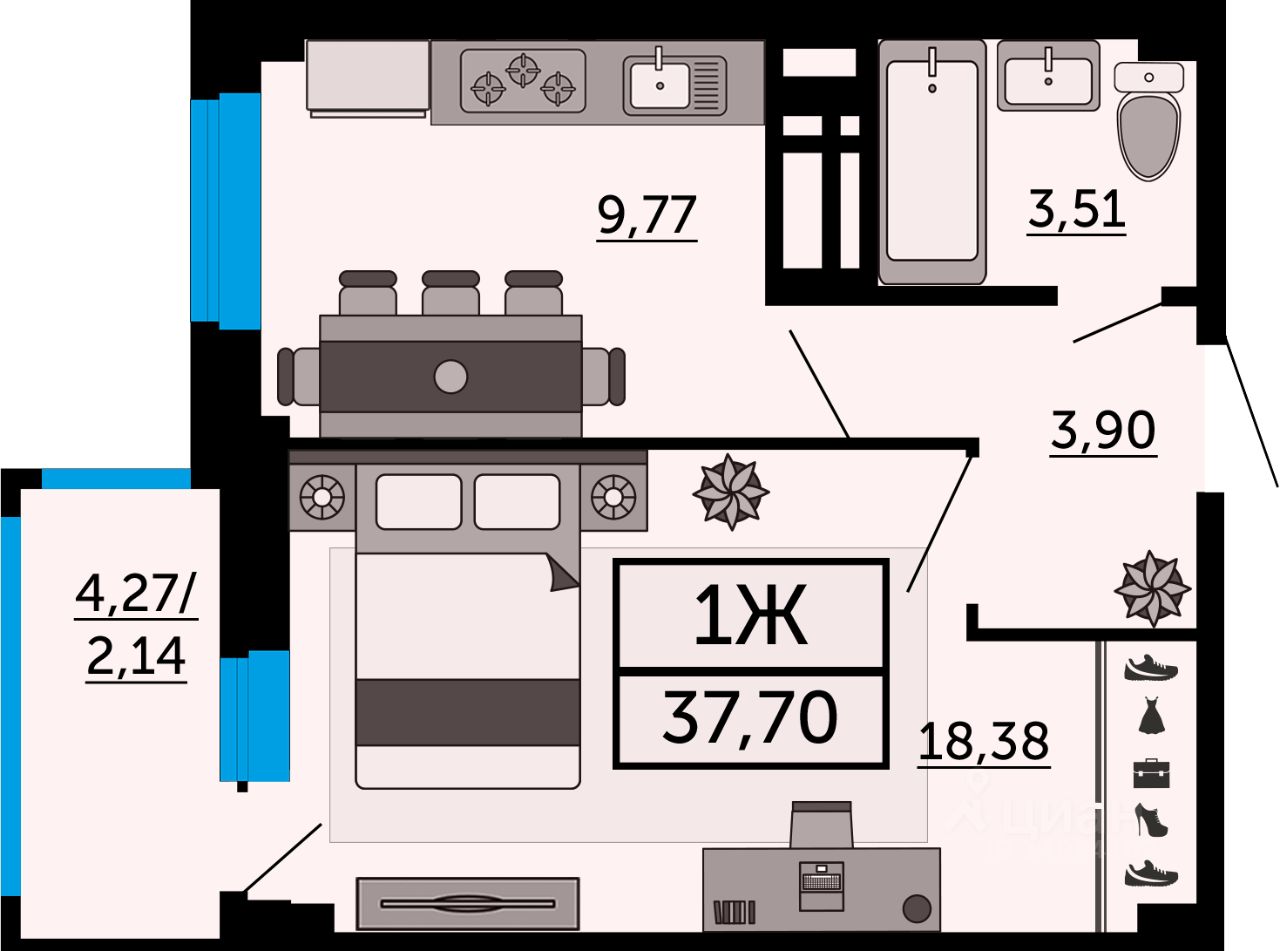 38 м² · Этаж 24 из 25
