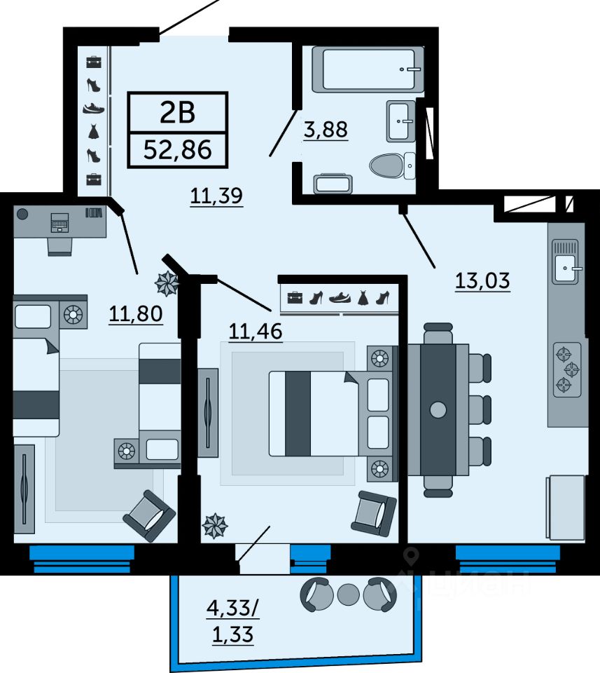 53 м² · Этаж 6 из 24
