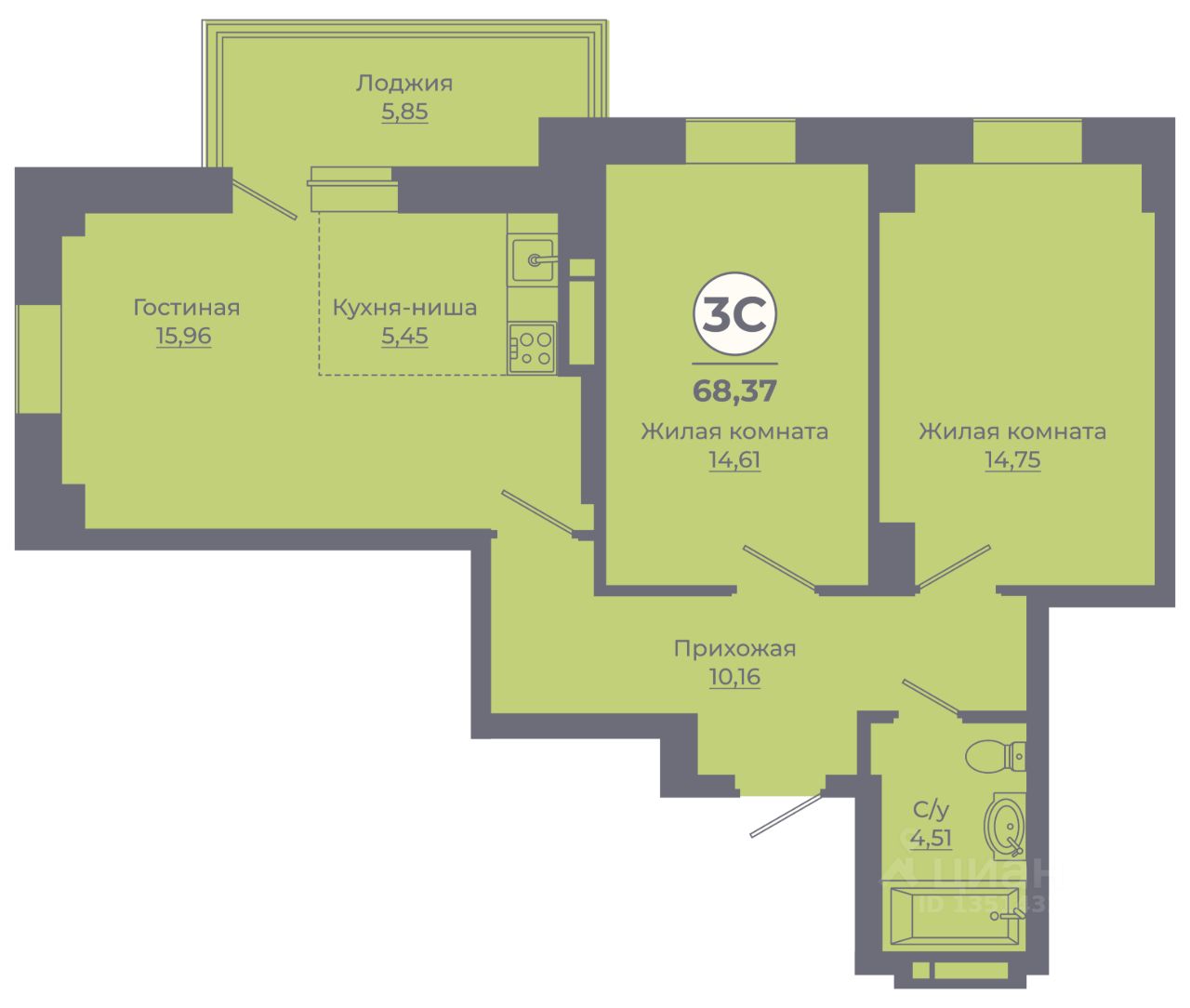 68 м² · Этаж 5 из 24