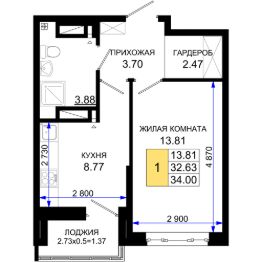 34 м2