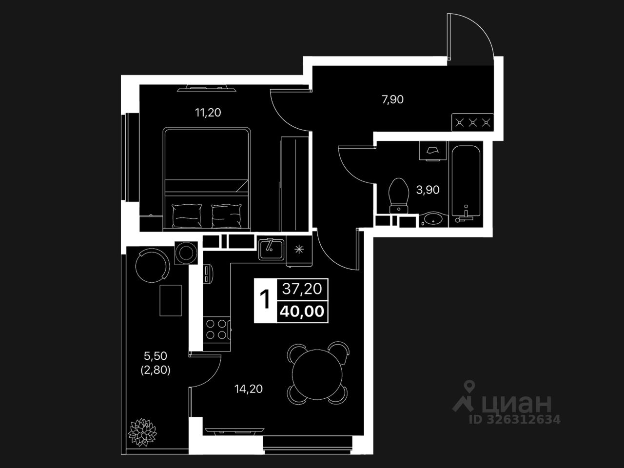 40 м² · Этаж 12 из 20