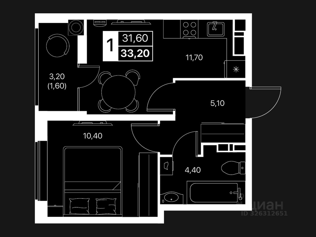 33 м² · Этаж 11 из 12