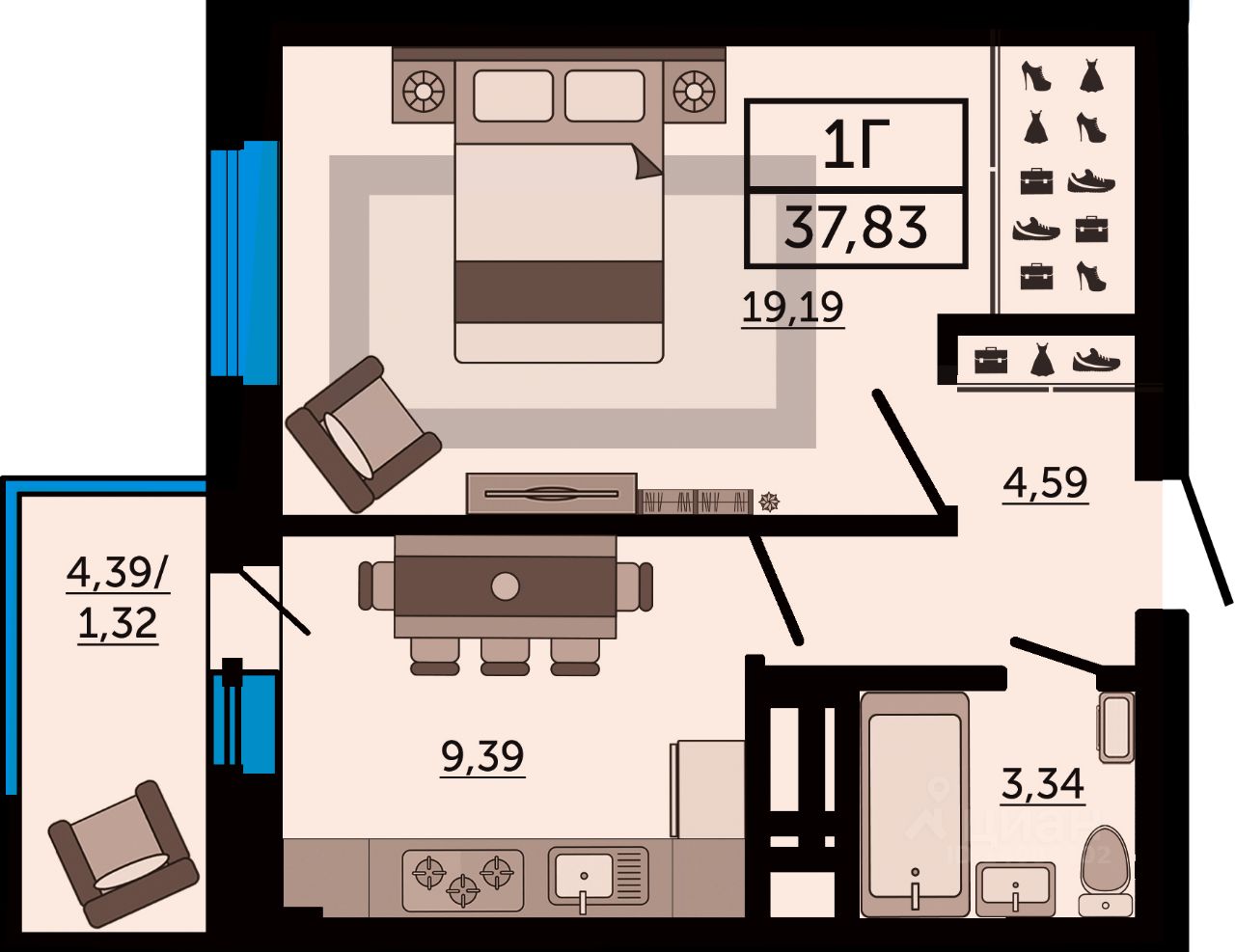 59 м² · Этаж 16 из 32