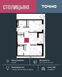 ЖК ''Столицыно'' — это самый масштабный проект ГК ТОЧНО в Ростовской области. На территории 42 га возводятся 18 домов переменной этажности, школа на 1300 мест, два детских сада на 600 мест, медицинский центр, парк 8,4 га и фитнес-центр с бассейном. Проект возводится по концепции ''город в городе'', где все необходимое для комфортной жизни будет в шаговой доступности.
