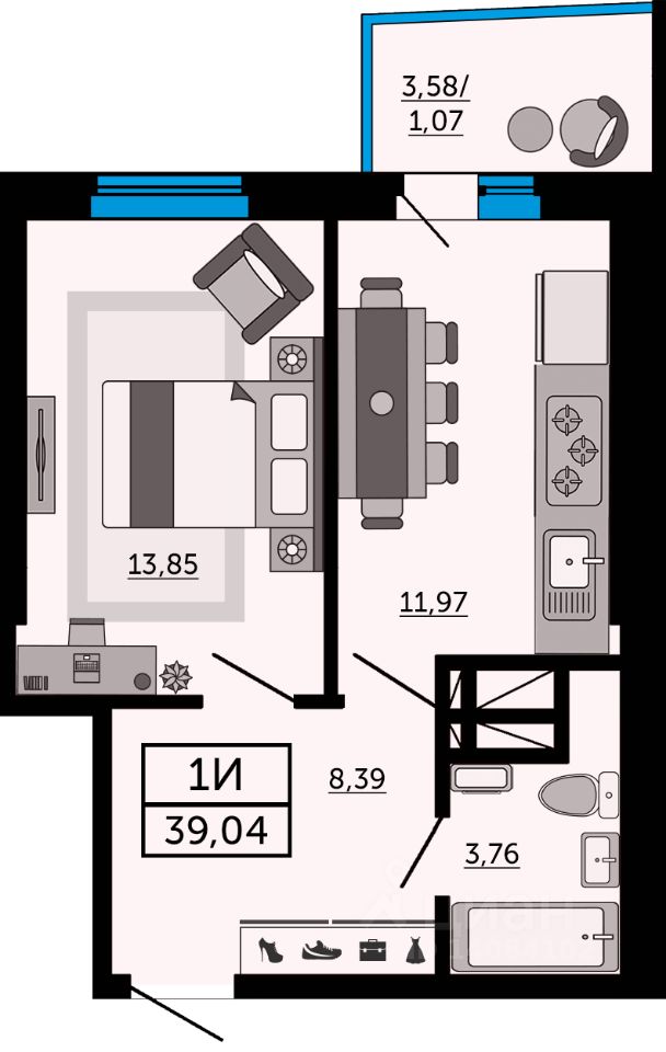 39 м² · Этаж 14 из 32