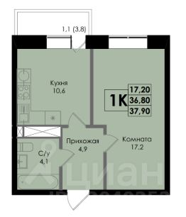 1-к квартира Показать на карте
