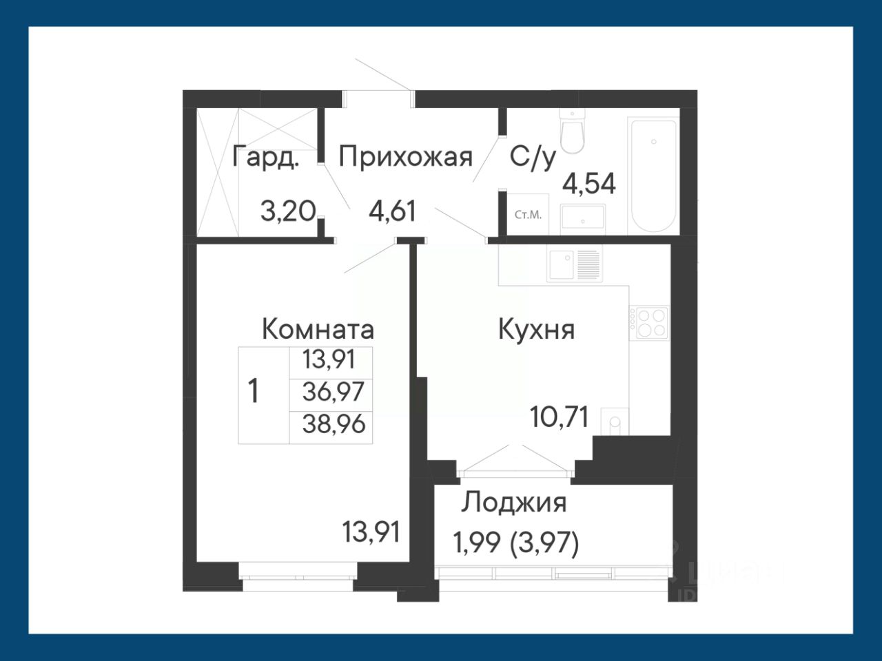 38 м² · Этаж 14 из 25