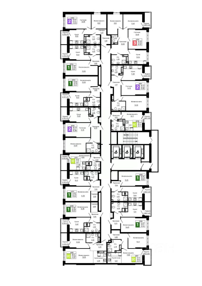 54 м² · Этаж 25 из 25