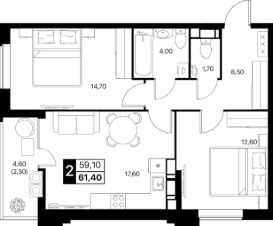 2-к квартира Показать на карте