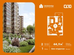 Продаётся 2-комнатная квартира в строящемся доме (Дом 2), срок сдачи: IV-кв. 2026, общей площадью 47.4 кв.м., на 1 этаже. ЖК Сезоны 1 это уникальный проект, созданный вдалеке от шума и суеты мегаполиса. Радоваться каждому дню в любом возрасте здесь будет проще - внутреннее состояние удовольствия поддерживает окружающая обстановка. Комплекс разработан с уникальным планом озеленения, главной идеей которого является зеленый двор круглый год. Большая игровая зона позволит родителям с комфортом проводить время со своими детьми. Закрытая территория обеспечивает безопасность и защиту от нежелательных посетителей, а подземный паркинг сохранит ваш автомобиль в отличном состоянии.