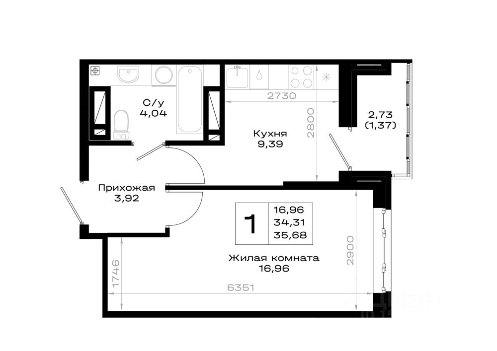 35 м² · Этаж 20 из 20