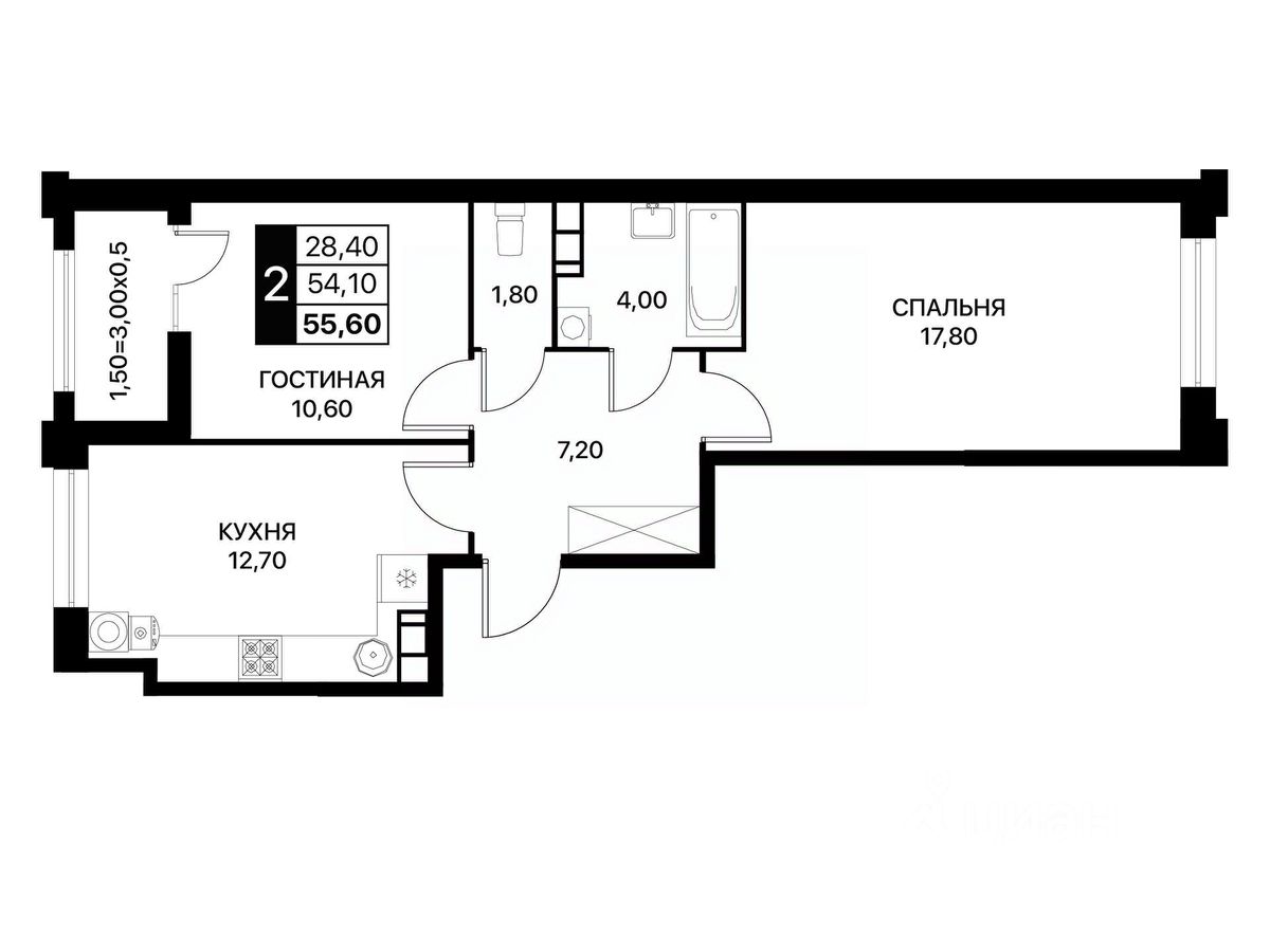 55 м² · Этаж 9 из 12