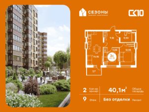 Продаётся 2-комнатная квартира в строящемся доме (Дом 2), срок сдачи: IV-кв. 2026, общей площадью 40.15 кв.м., на 9 этаже. ЖК Сезоны 1 это уникальный проект, созданный вдалеке от шума и суеты мегаполиса. Радоваться каждому дню в любом возрасте здесь будет проще - внутреннее состояние удовольствия поддерживает окружающая обстановка. Комплекс разработан с уникальным планом озеленения, главной идеей которого является зеленый двор круглый год. Большая игровая зона позволит родителям с комфортом проводить время со своими детьми. Закрытая территория обеспечивает безопасность и защиту от нежелательных посетителей, а подземный паркинг сохранит ваш автомобиль в отличном состоянии.