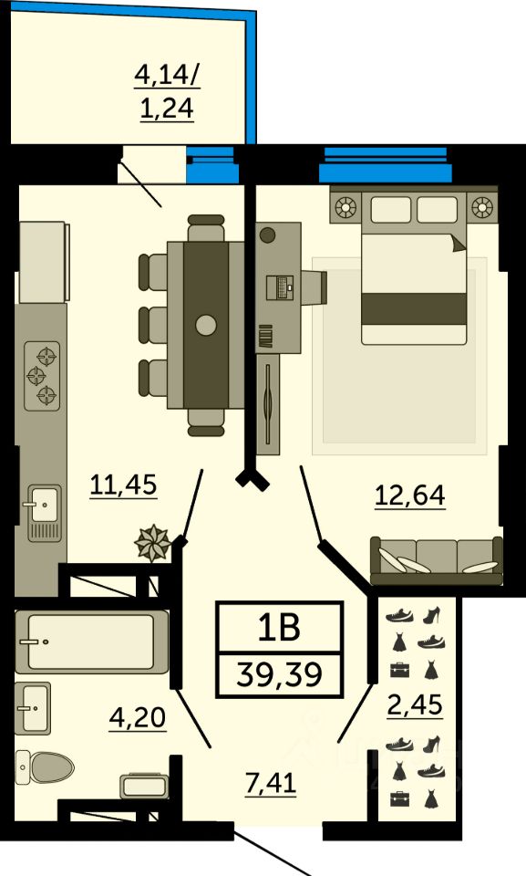 39 м² · Этаж 25 из 26