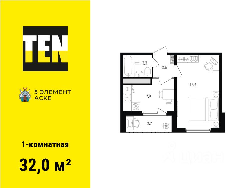 32 м² · Этаж 4 из 16