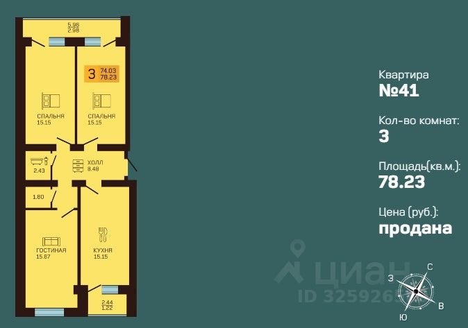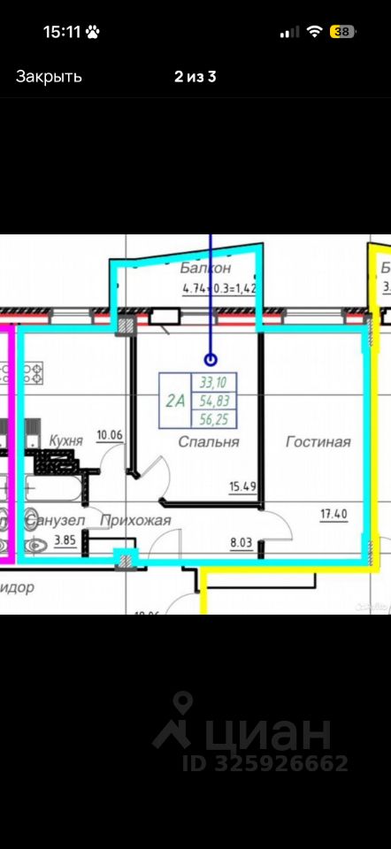 74 м² · Этаж 2 из 3