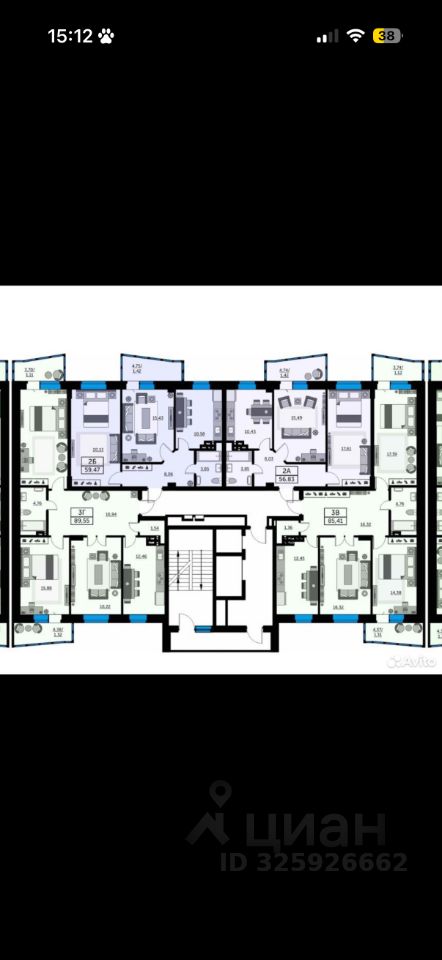38 м² · Этаж 19 из 19