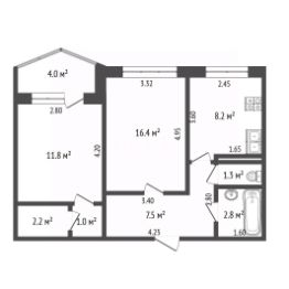 Просторная изолированная гостинка состоит из двух смежных комнат, кухни, раздельного сан узла и прихожей. Их одной комнаты выходит застекленный балкон. Состояние хорошее, никто не проживает. Один взрослый собственник. Без обременений. Ипотека и материнский капитал подходят