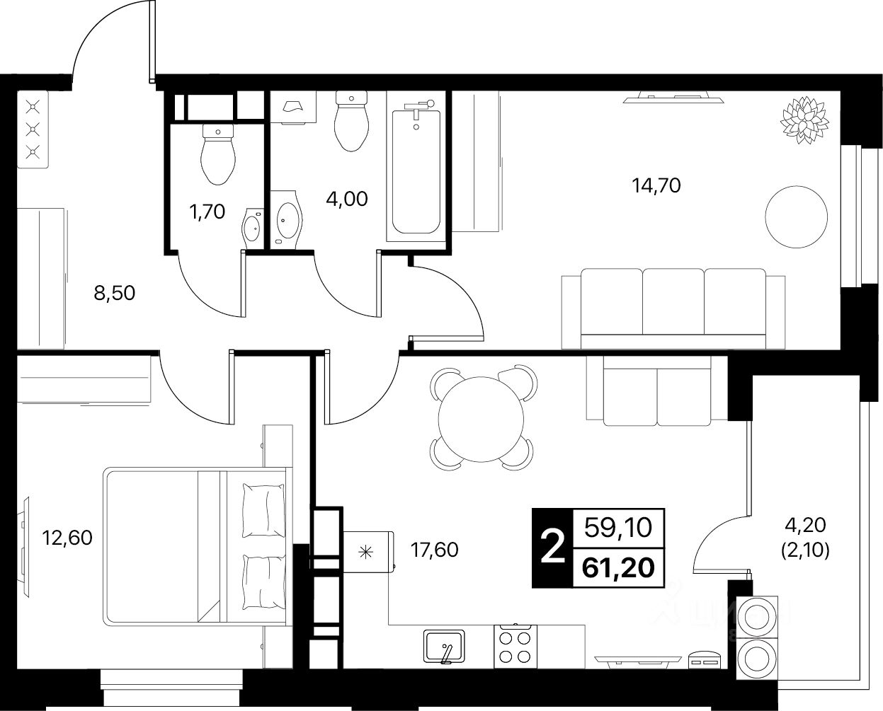61 м² · Этаж 6 из 12