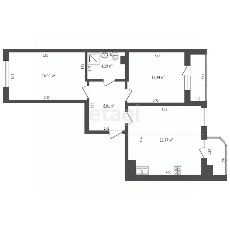 3-к, Берберовская, 16 ст2
