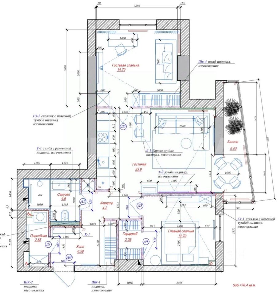 76 м² · Этаж 6 из 22