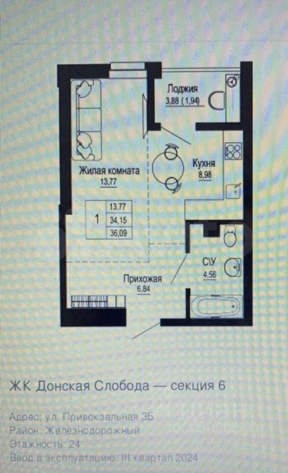 Отличная 1 комнатная квартира в ЖК комфорт класса ''ДОНСКАЯ СЛОБОДА''. Современный ремонт, выполненный в универсальном дизайне и тонах. Общая площадь 39,9 м² Площадь кухни 15 м² Подойдет для любителей строгого стиля и для тех, кто захочет украсить свой интерьер яркими акцентами. Продается с мебелью, дополняющей стиль квартиры: Стол, мягкие стулья, два спальных места. Кухня полностью оборудована современной мебелью и техникой. В санузле установлены счетчики с антипротечкой. Теплый пол с индивидуальной разводкой по комнатам. В подъезде 2 пассажирских и 1 грузовой лифт. Инфраструктура комплекса: закрытая территория с круглосуточным видеонаблюдением и охраной, на придомовой площадке есть места для отдыха, локации для детских игр и занятий спортом, Дополнительно оплачивается комиссия с покупателя. Код пользователя: 184955 Номер в базе: 9704245