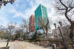 Двухкомнатная квартира площадью 50,3 м² расположена на третьем этаже семиэтажного кирпичного дома 1958 года постройки. Общая жилая площадь составляет 28 м², кухня — 9 м². Изолированные комнаты и высота потолков 3,1 м создают ощущение простора. Окна выходят во двор на солнечную сторону, обеспечивая хорошее естественное освещение и защиту от уличного шума. В квартире выполнен качественный дизайнерский ремонт с полной заменой инженерных коммуникаций: обновлены водопроводные и канализационные трубы, электропроводка, установлены новые двери высотой 2,3 м. В санузле совмещенного типа заменены сантехника, включая встроенный унитаз и раковину, а пол и стены отделаны керамогранитом с подогревом. Напольное покрытие во всей квартире — итальянский керамогранит, стены украшает рельефная штукатурка, потолки — натяжные. В прихожей установлен зеркальный шкаф-купе, на входную дверь — электронный кодовый замок с возможностью управления через умный дом. Квартира оснащена климатической системой ''Зима-Лето'' в каждой комнате, кондиционером и водонагревателем. Балкон позволяет использовать дополнительное пространство для хранения или отдыха. В распоряжении жильцов имеется подвал для сезонных вещей. Дом находится на закрытой территории с парковкой за шлагбаумом, что обеспечивает безопасность и комфорт. Четыре года назад в здании проведен капитальный ремонт с заменой лифта, фасада и кровли, подъезд содержится в чистоте. Расположение объекта отличается удобной транспортной доступностью и развитой инфраструктурой. В пешей доступности — парк Горького, ЖД вокзал и авто вокзал, ЦУМ и Центральный рынок, что делает этот район привлекательным для жизни. Квартира подходит для тех, кто ценит комфорт, безопасность и современный уровень отделки. Возможна покупка в ипотеку, сделка на свободных условиях.Дополнительно оплачивается комиссия с покупателя. Код пользователя: 118934Номер в базе: 9103914