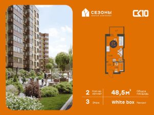 Продаётся 2-комнатная квартира в строящемся доме (Дом 3), срок сдачи: IV-кв. 2026, общей площадью 48.55 кв.м., на 3 этаже. ЖК Сезоны 1 это уникальный проект, созданный вдалеке от шума и суеты мегаполиса. Радоваться каждому дню в любом возрасте здесь будет проще - внутреннее состояние удовольствия поддерживает окружающая обстановка. Комплекс разработан с уникальным планом озеленения, главной идеей которого является зеленый двор круглый год. Большая игровая зона позволит родителям с комфортом проводить время со своими детьми. Закрытая территория обеспечивает безопасность и защиту от нежелательных посетителей, а подземный паркинг сохранит ваш автомобиль в отличном состоянии.