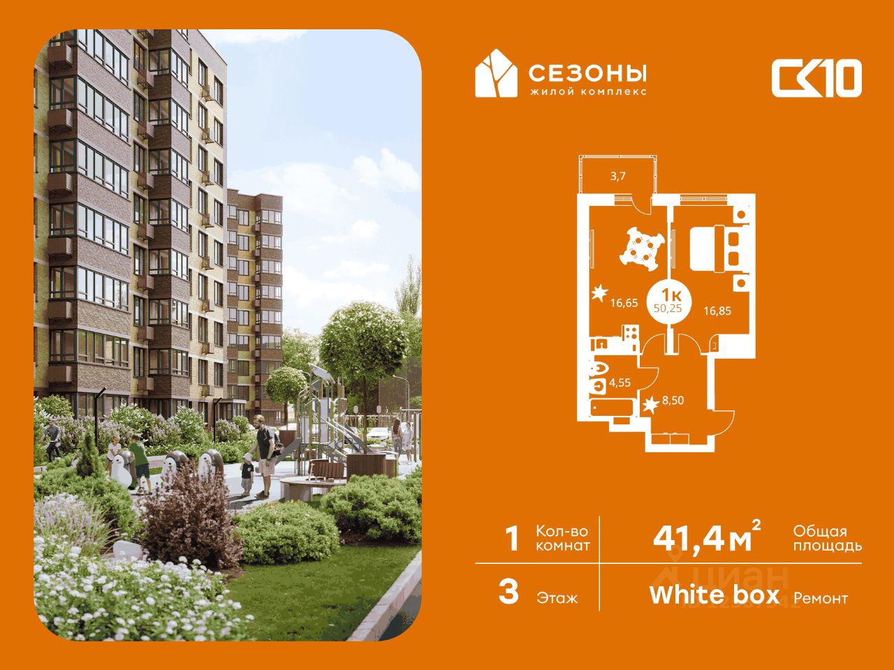 Продаётся 1-комнатная квартира в строящемся доме (Дом 3), срок сдачи: IV-кв. 2026, общей площадью 41.4 кв.м., на 4 этаже. ЖК Сезоны 1 это уникальный проект, созданный вдалеке от шума и суеты мегаполиса. Радоваться каждому дню в любом возрасте здесь будет проще - внутреннее состояние удовольствия поддерживает окружающая обстановка. Комплекс разработан с уникальным планом озеленения, главной идеей которого является зеленый двор круглый год. Большая игровая зона позволит родителям с комфортом проводить время со своими детьми. Закрытая территория обеспечивает безопасность и защиту от нежелательных посетителей, а подземный паркинг сохранит ваш автомобиль в отличном состоянии.